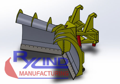 Built for one of our dealers in Augsburg Germany, this plow is 11′ wide 42″ tall at the center hinge pin and then extends to 70″ tall on the outer snow flairs. This custom design plow uses the same replacement parts as our MDP Series Snow Plows including; re-packable cylinders, center hinge nose guard, 3/4×8 B/O Cutting Edges, 3″ Center Hinge Pin with gusset reinforcement, and dual flow control valves for cylinder protection from pressure spikes. Optional mushroom skid shoes, Nitrogen Accumulators, and a Hydraulic/Electric selector valves for graders or loaders needing to split a single 3rd function valve into two operations are available.