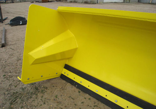 The Snow Pusher comes standard with a rubber cutting edge. Side braces are enclosed to eliminate snow build up while clearing parking lots. Steel Edge and Carbide Insert options available. (Retention chains not included)