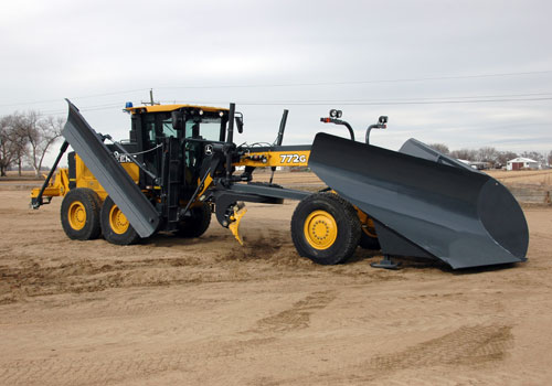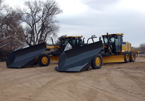 Rylind V-Type Snow Plows can be mounted on either Wheel Loaders or Motor Graders.